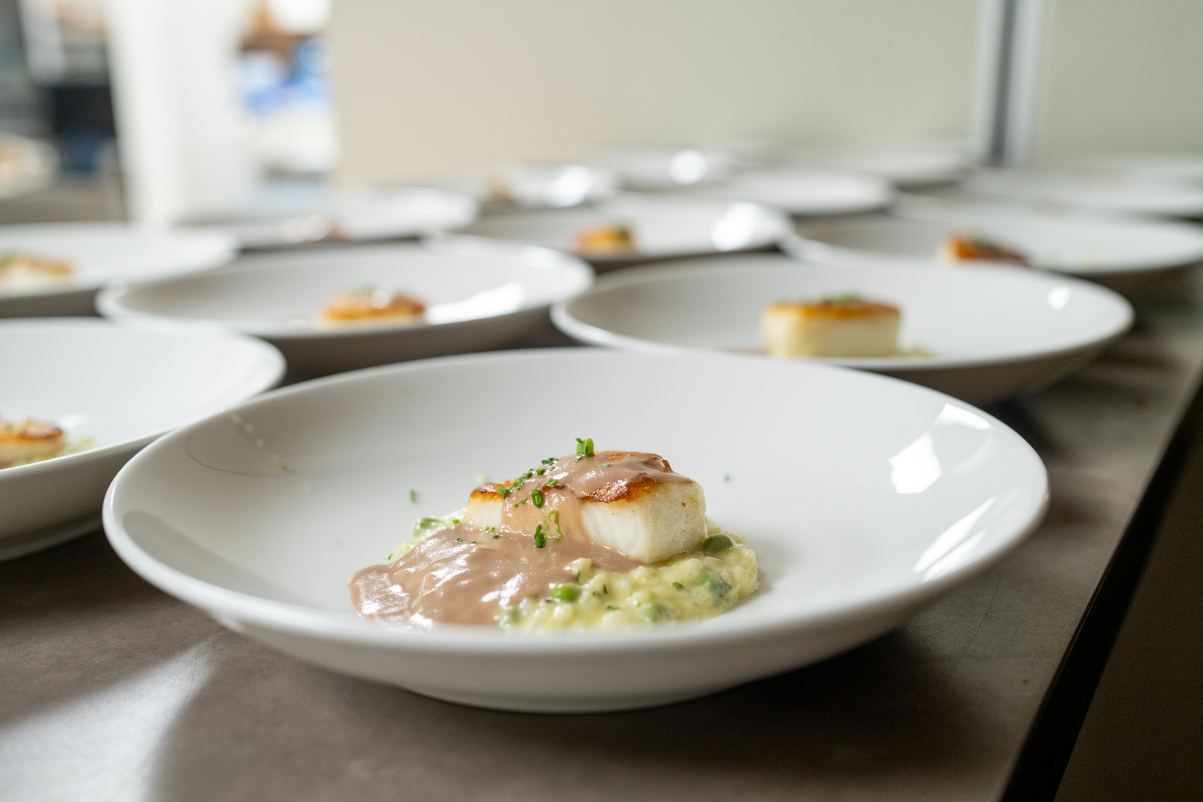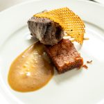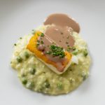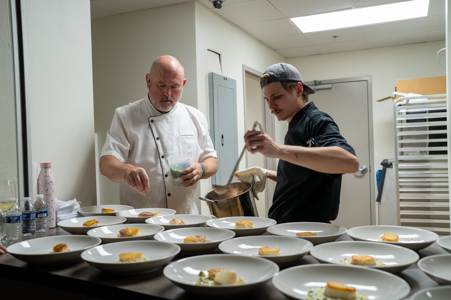 The meal continued with black bass served over pea risotto with Barolo sauce, and a rich Wagyu striploin accompanied by duck fat potatoes and green peppercorn sauce. Each course was expertly paired with wines by Benovia Winery, selected by owner Joe Anderson, creating a memorable culinary and wine experience for guests.