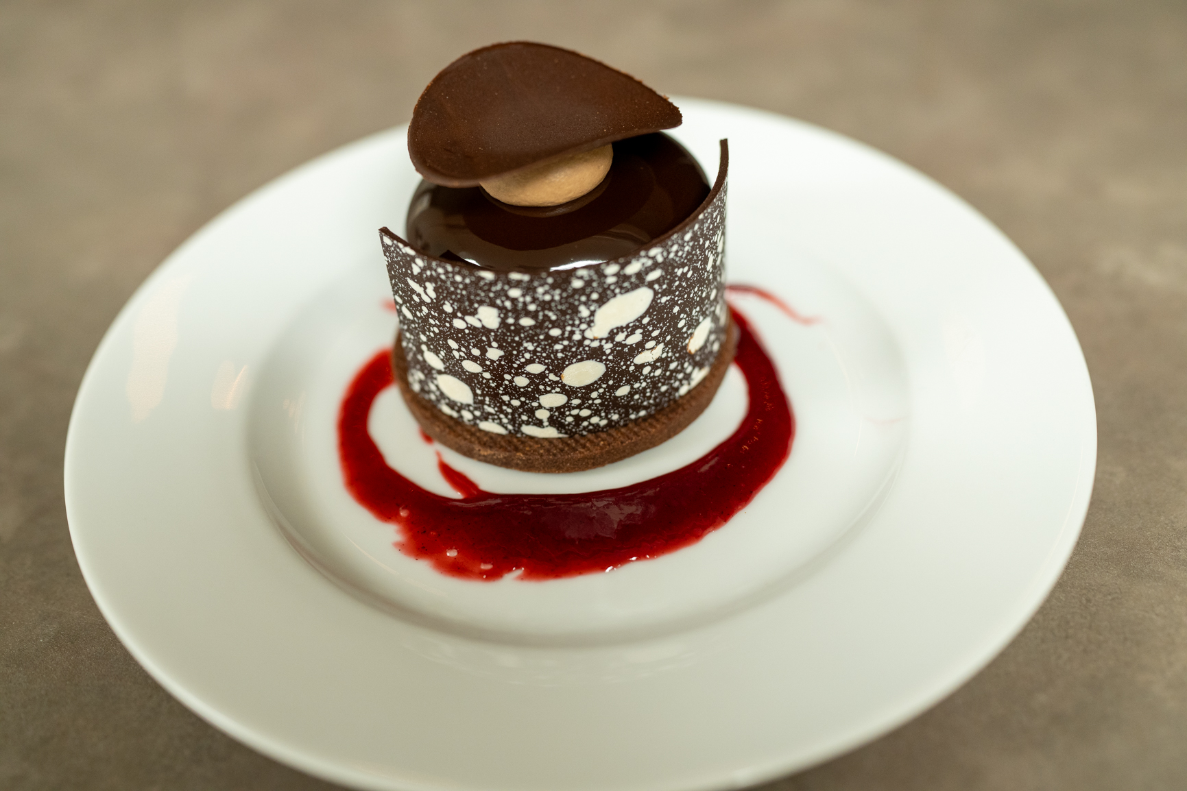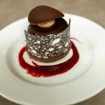 Dessert was a decadent finale from Norman Love Confections, featuring a layered chocolate truffle cake with mousse, cream, and crunch.