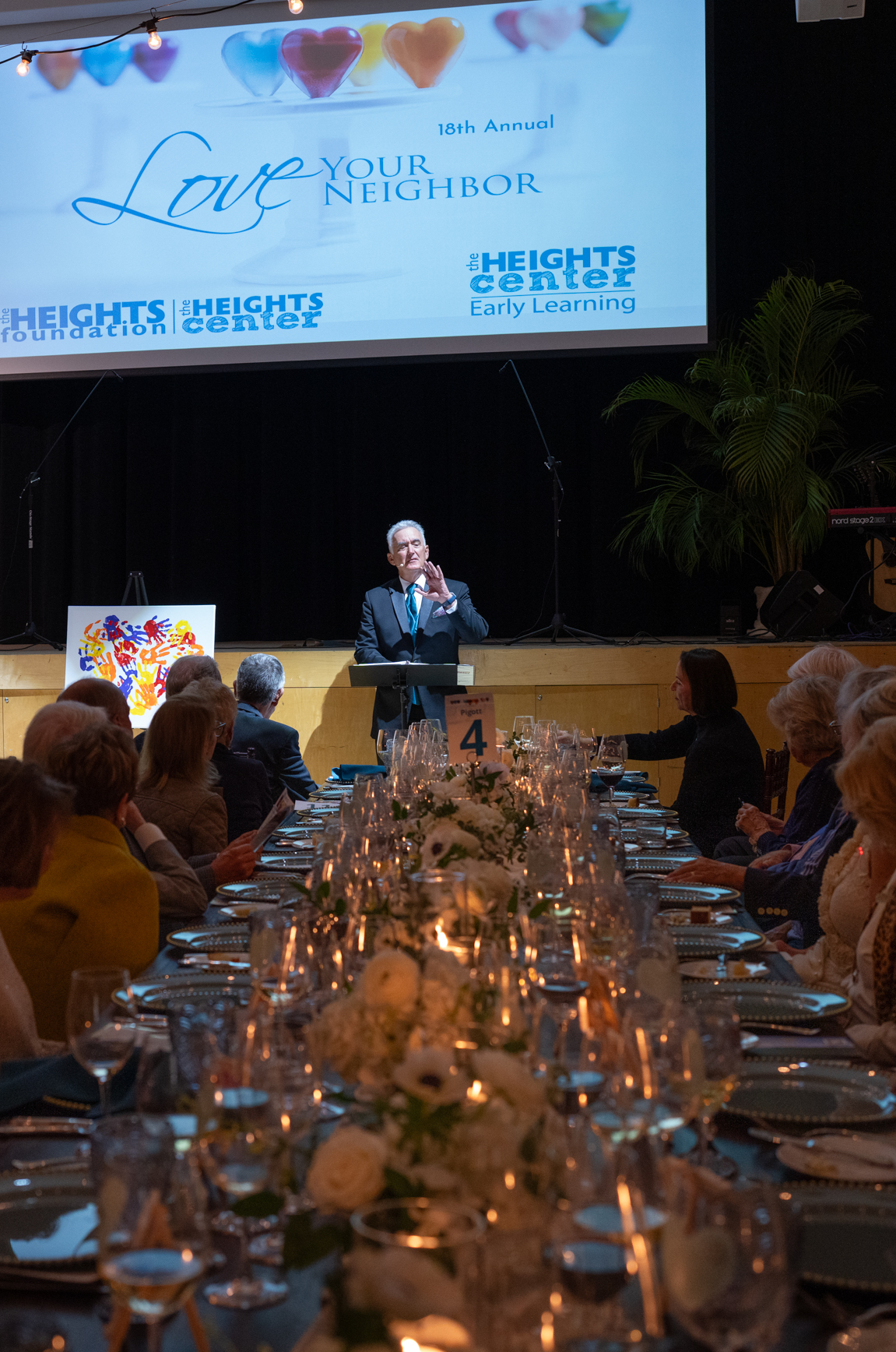 Guests were welcomed by Board Chair Jim Dwyer and enjoyed cocktails and hors d’oeuvres by CRAVE Culinaire. Emcee Kellie Burns of Gulf Coast News and Auctioneer Scott Robertson of Champion Fundraising Auctions led the evening’s program, which included a Fund A Need. A $100,000 challenge match from Gaye and Jim Pigott helped inspire donors to raise $725,500 in support of The Heights’ educational programs.