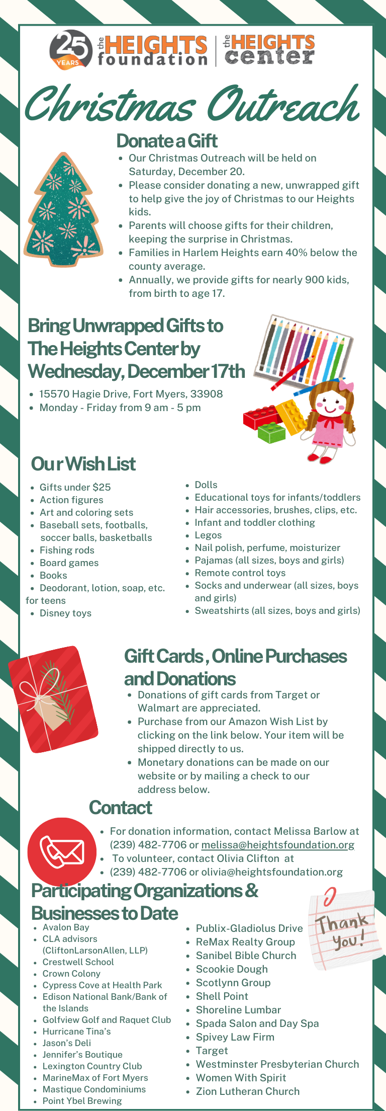 THE TAX IDENTIFICATION NUMBER FOR THE HEIGHTS FOUNDATION, INC. IS 36-4736711, AND QUALIFIES UNDER SECTION 501(C)(3) OF THE INTERNAL REVENUE CODE. A COPY OF THE OFFICIAL REGISTRATION AND FINANCIAL INFORMATION MAY BE OBTAINED FROM THE DIVISION OF CONSUMER SERVICES BY CALLING TOLL FREE 1-800-435-7352 WITHIN THE STATE. REGISTRATION DOES NOT IMPLY ENDORSEMENT, APPROVAL OR RECOMMENDATION BY THE STATE.